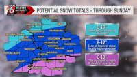The forecast for totals for space nearer to the Kentucky-Tennessee state line is far tricker. If precipitation stays as all snow, this zone may see the upper finish 8-12″+ totals. Nonetheless, a pointy gradient to a lot decrease snow totals is probably going for areas that find yourself with sleet for a time period.